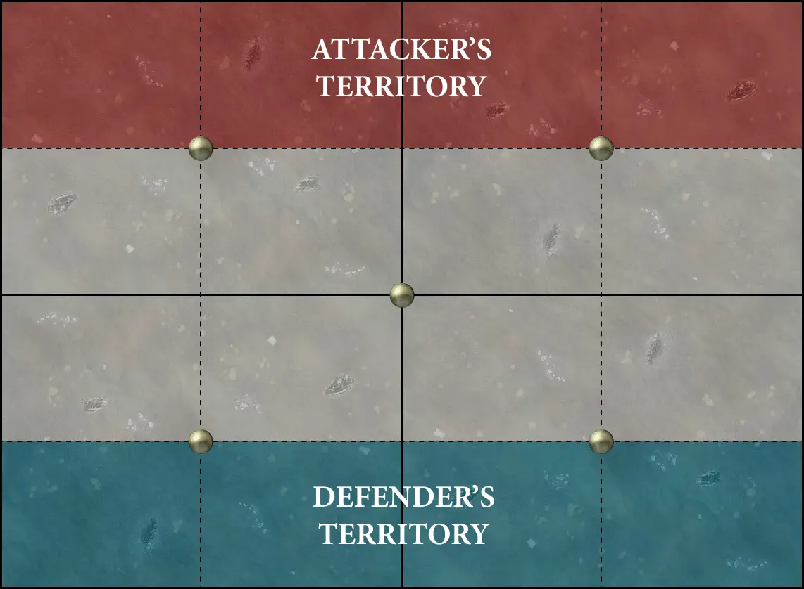 objectives in the locations indicated by gold circles on the battlefield map. Then, the
