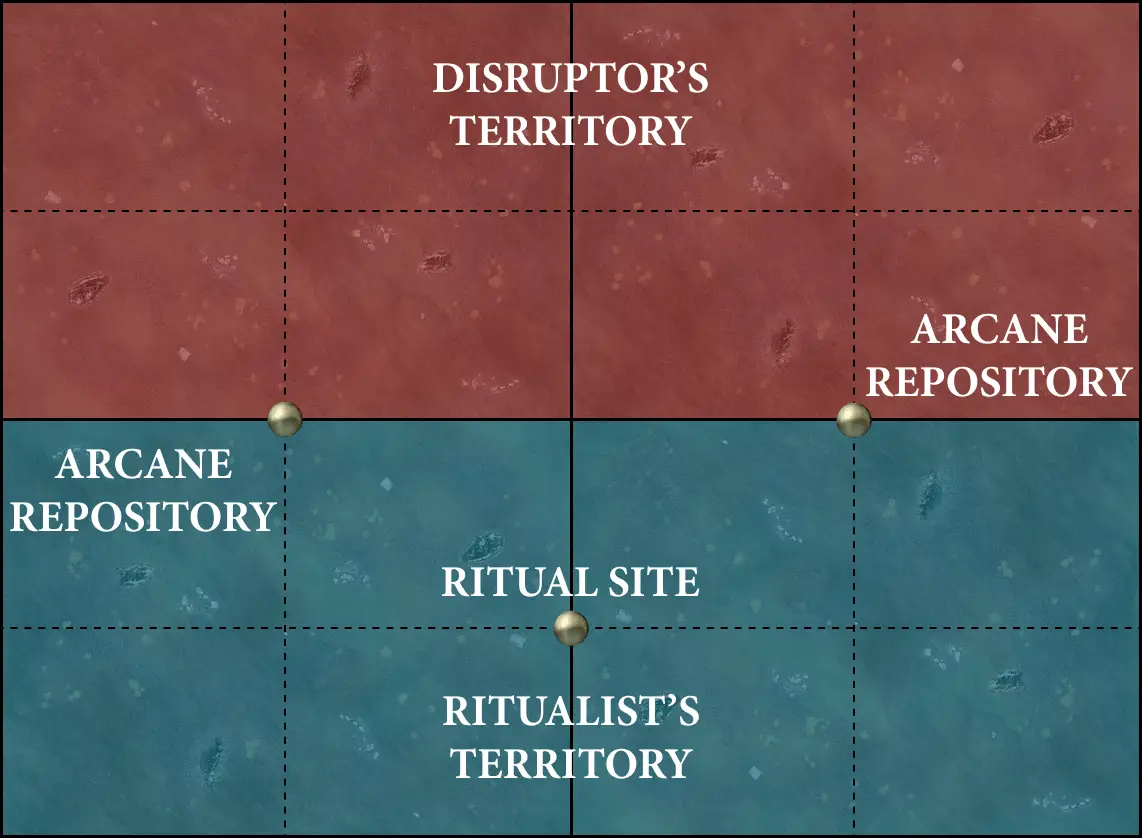 ritualist sets up objectives in the locations indicated by gold circles on the