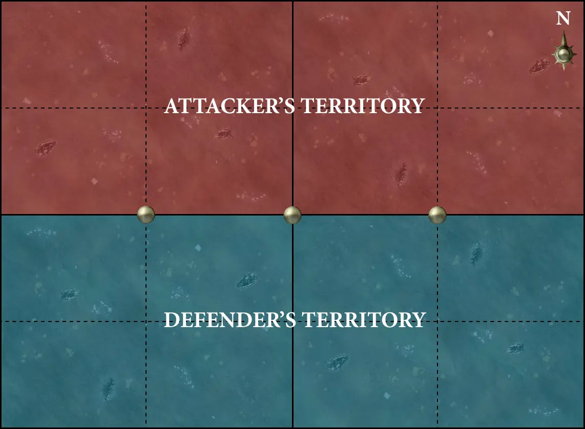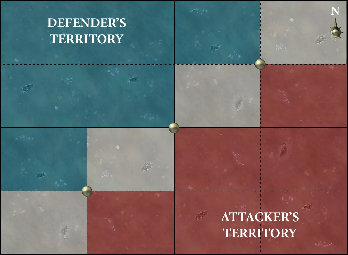 The players then resolve the deployment phase. The attacker begins deployment (
