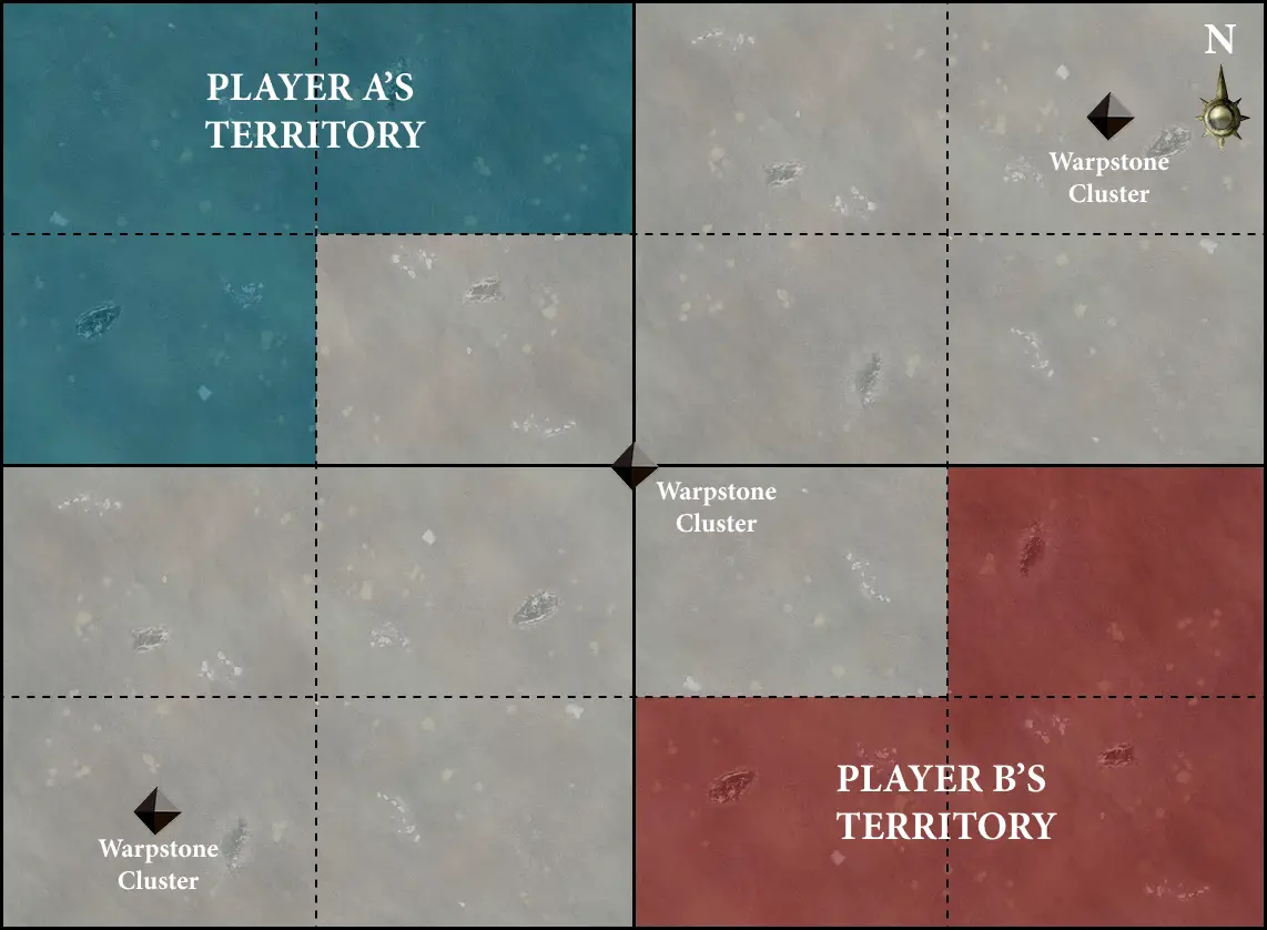 Two armies vie to recover valuable realmstone from this vast plain, but each has inadvertently blocked their enemy’s escape route.SET UP THE BATTLEFIELD