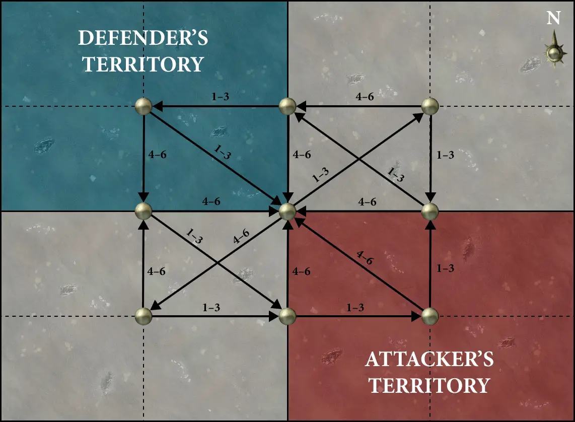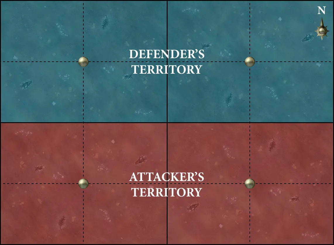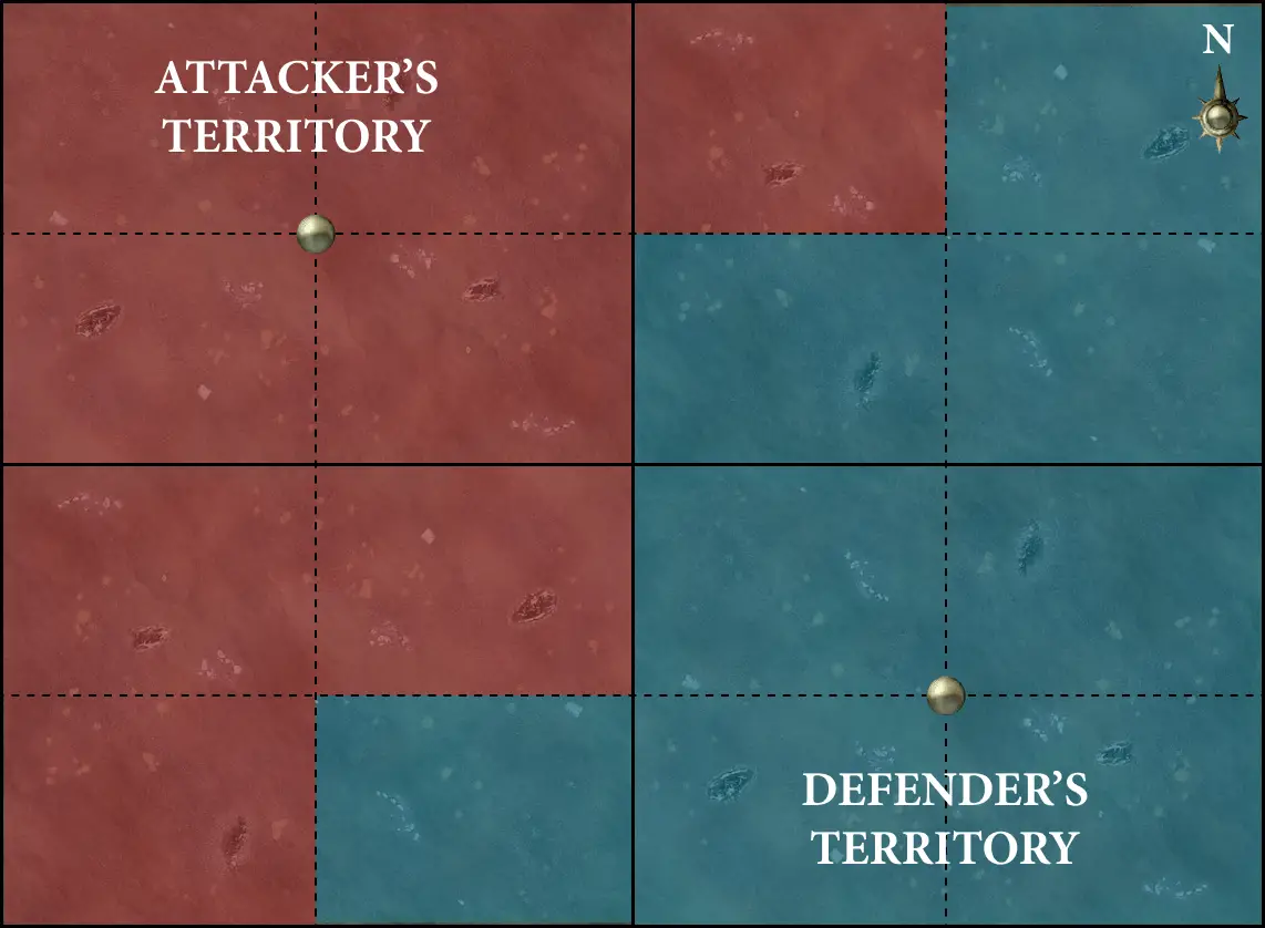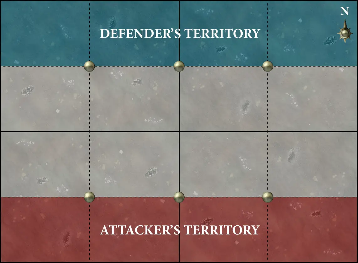 The players then resolve the deployment phase. The attacker begins deployment (