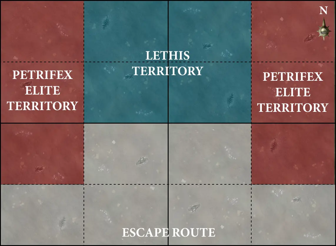 ESCAPE ROUTE: The Lethisians must escape the clutches of the Petrifex Elite and raise the alarm at nearby outposts.