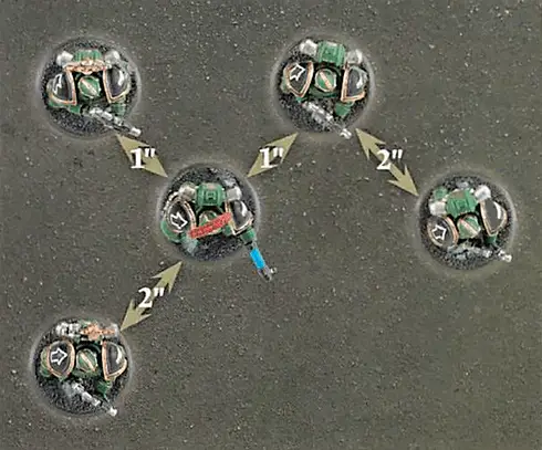 All Models in a Unit must remain within a certain distance of at least one other Model that is part of the same Unit. This is referred to as being in Unit Coherency, the Rules governing Unit Coherency are presented in more detail