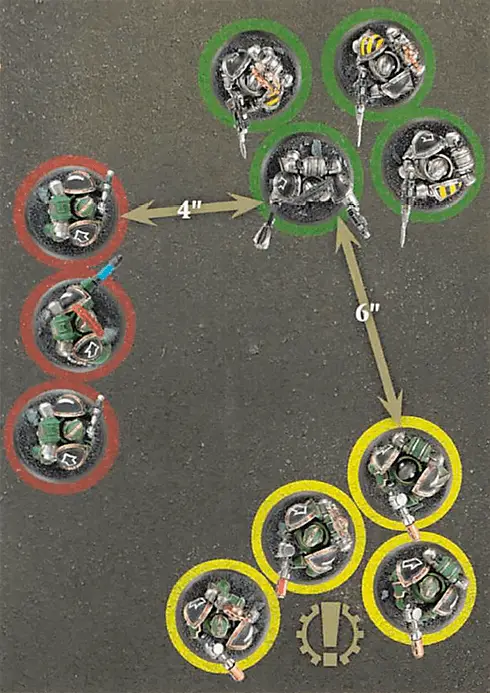 | A: | A Model is counted as moving through another Unit when its Line of Movement either crosses the base of a Model from another Unit or passes between two Models from another Unit that are in Unit Coherency with each other. |