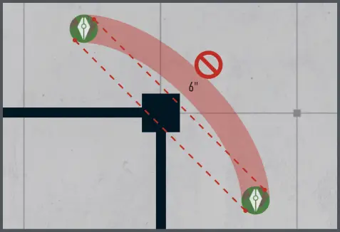 | A: | You cannot measure between your OBELISK NODE markers if Wall terrain is intervening. This means the OBELISK NODE MATRIX does not curve around walls, it must be a single straight line. ![]() |