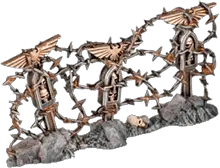 Spooled rapidly out and affixed to jutting posts, razor wire acts as an easily deployed barrier and a painful deterrent to enemy operatives seeking to attack along particular routes.