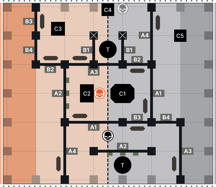 Some rare rules will require you to select a point that is Visible (e.g. a point on the killzone). In such circumstances, you must be able to draw an imaginary, unobstructed straight line 1mm wide from the head of the active operative’s miniature to the point you would select.