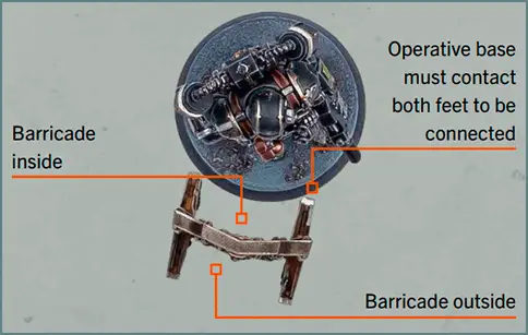 Before this operative moves, remove the portable barricade it’s connected to. After it moves, set up the portable barricade so it’s connected again, but the portable barricade cannot be set up within 2" of other equipment terrain features, access points or