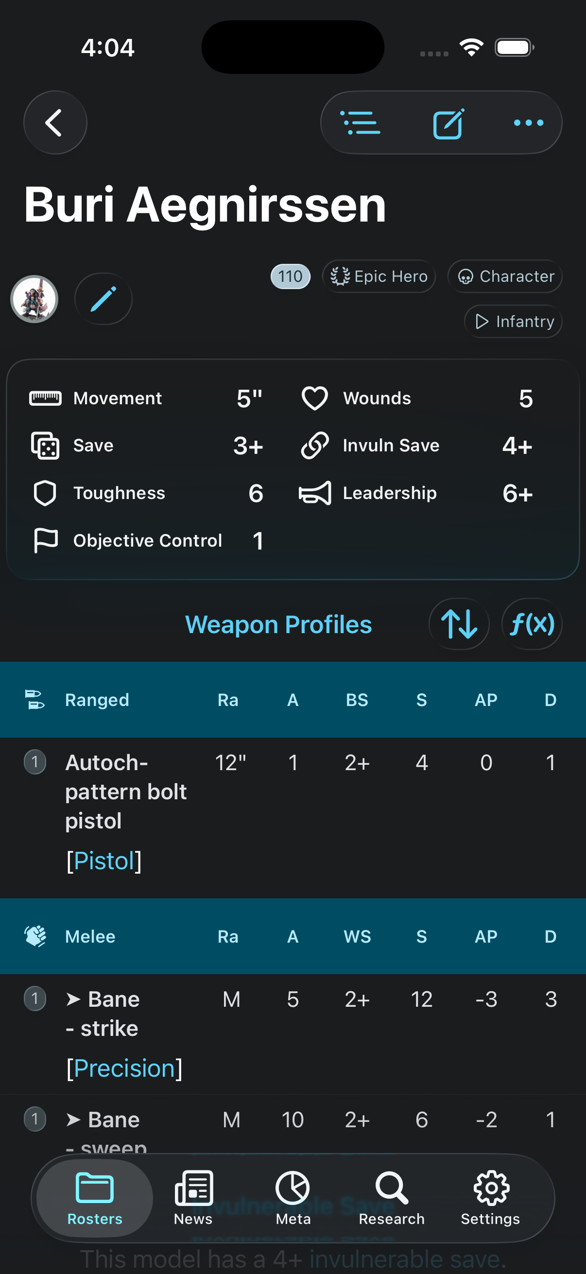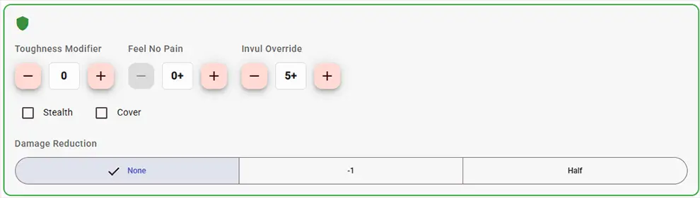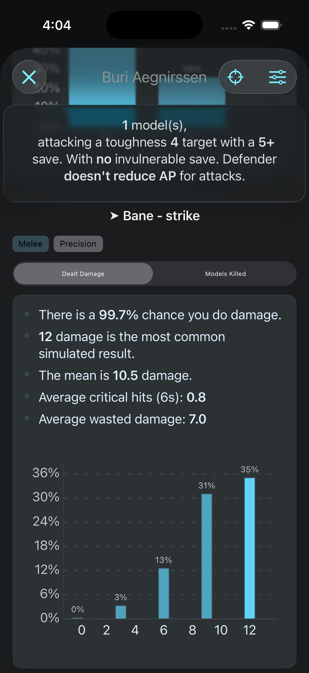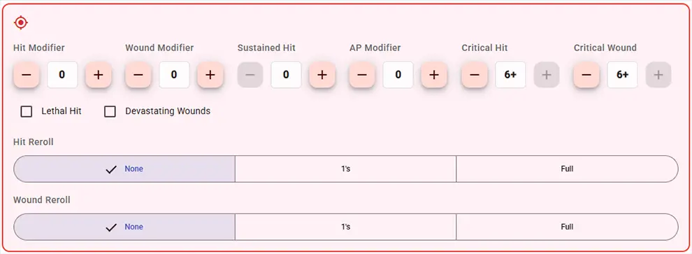 Modify units with buffs or debuffs and recalculate to compare. Which weapon loadout is best? Should you take the leader with full re-rolls or +1 Toughness? Use Rebus Stats to find out!