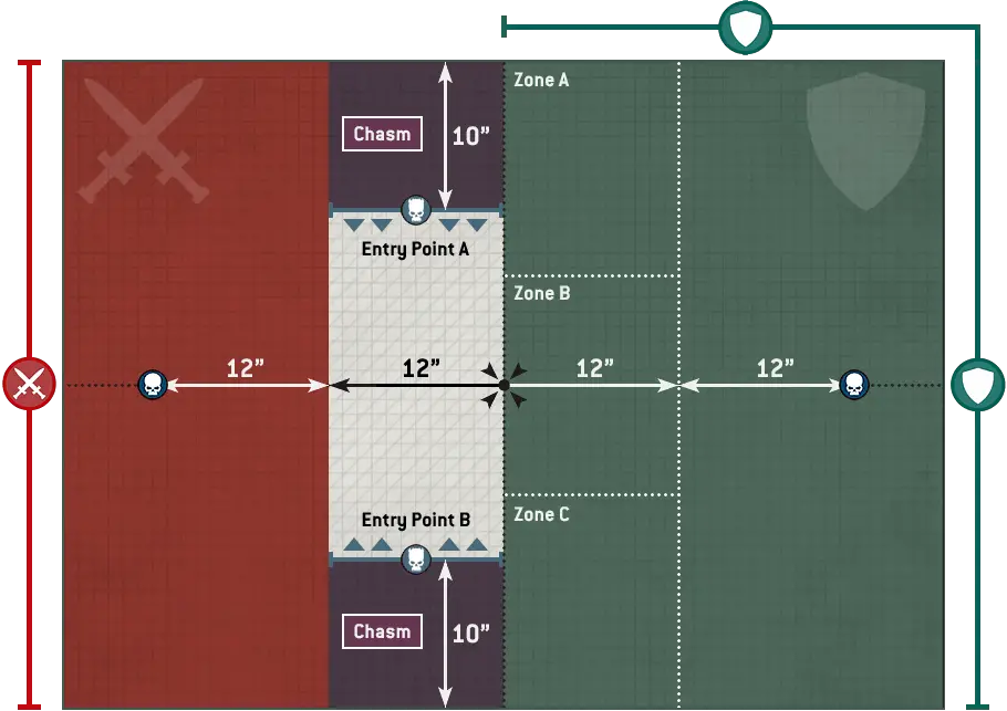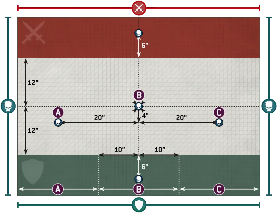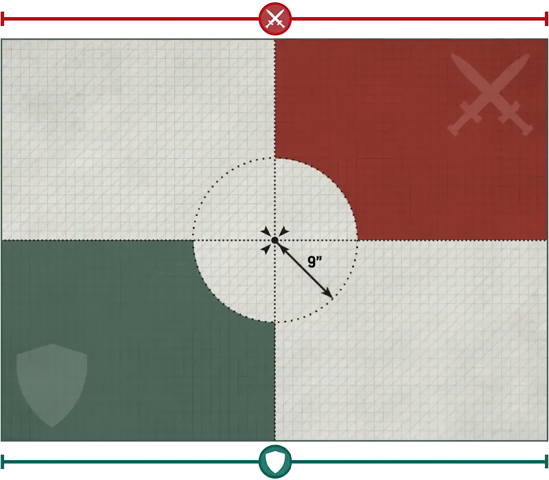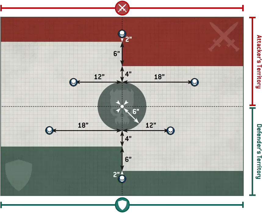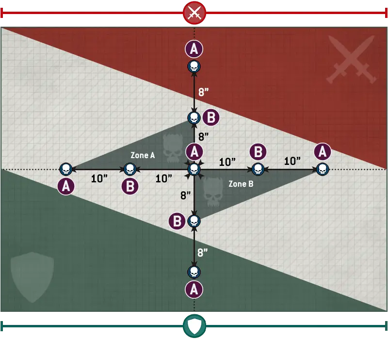 - If there are no units from the Attacker’s army within the Gamma zone, they score 7VP; if there are no units from the Attacker’s army within the Defender’s deployment zone, the Defender scores 12VP instead.