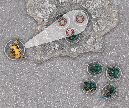 When firing a Blast weapon, models do not roll To Hit. Instead, pick one enemy model visible to the firer and place the Blast (3") marker with its hole entirely over the base of the target model, or its hull if the target is a Vehicle. The hole at the centre of the marker must be within the weapon’s Maximum Range. You cannot place the Blast marker so that the base or hull of any friendly model is even partially under it.